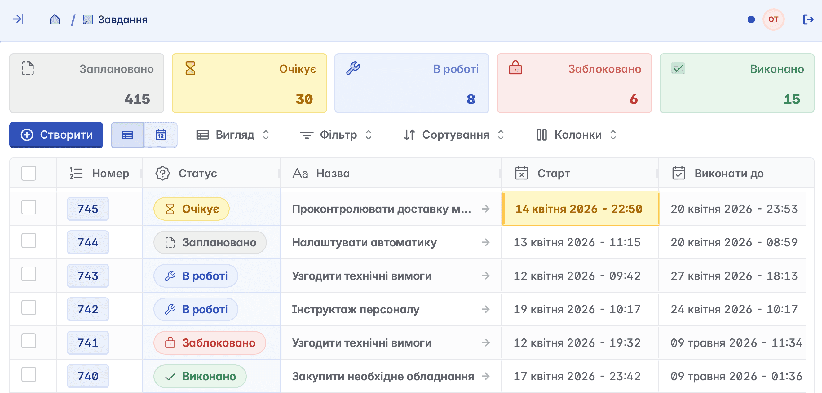 Керуй™ дозволяє побудувати роботу так, щоб контроль дедлайнів відбувався природно - через структуру завдань, прозорість процесів і взаємодію між модулями.