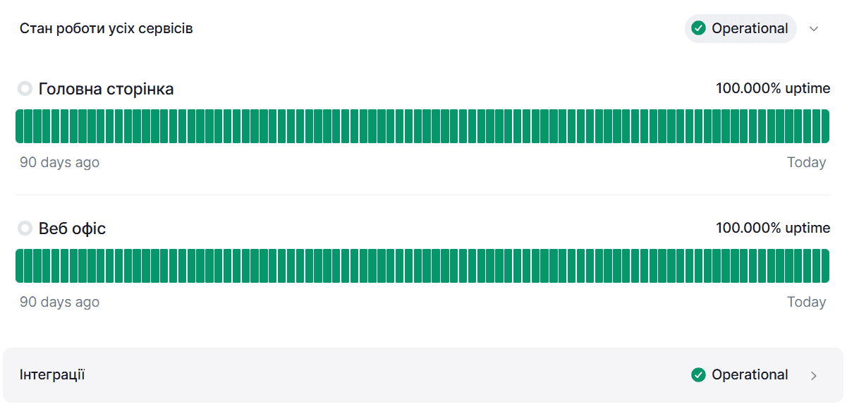 За даними статусної сторінки нашого сервісу, Керуй не мав жодних фіксованих збоїв чи недоступностей за цей період - усі сервіси були онлайн і працездатні.