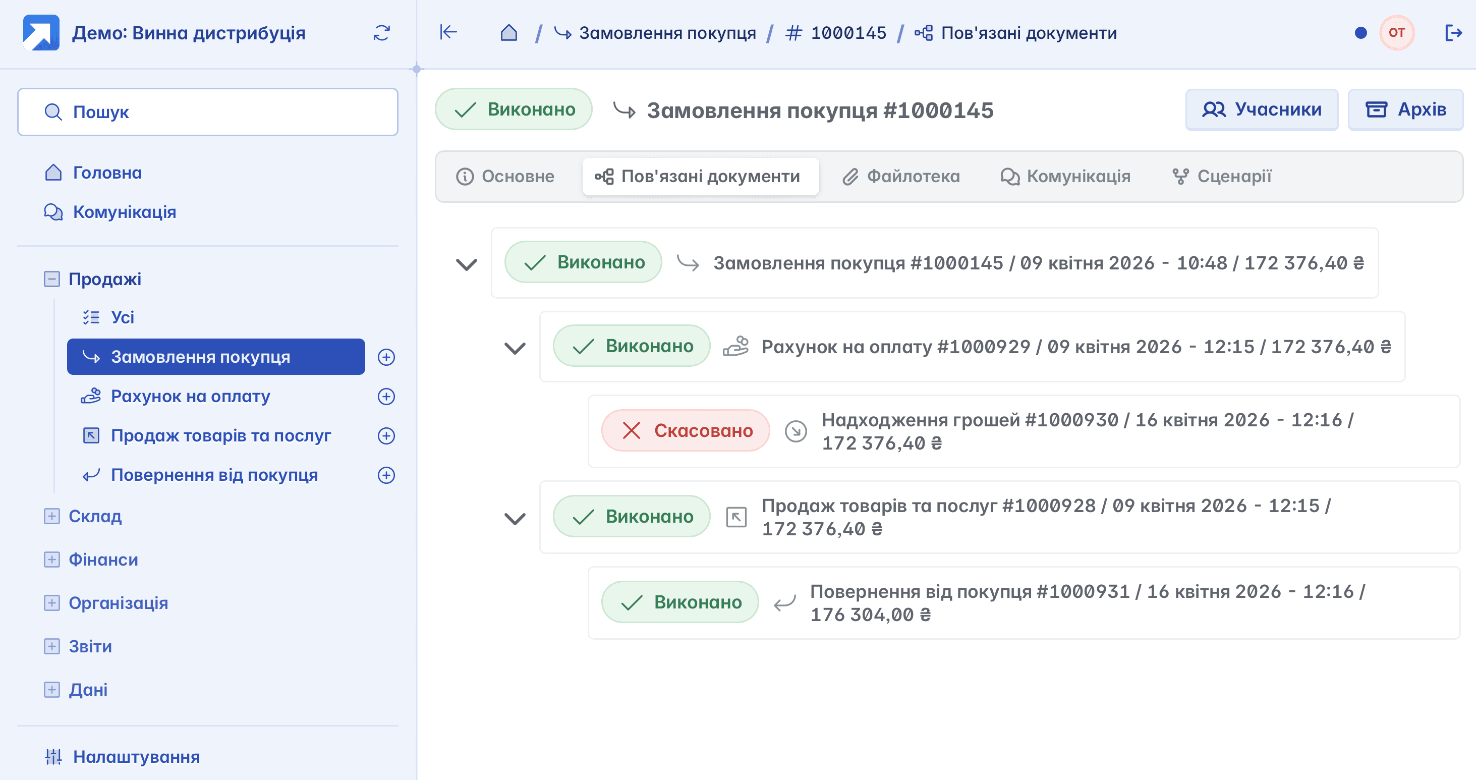 Одна з ключових особливостей Керуй™ - взаємодія між документами. Ви працюєте не з окремими записами, а з логічним ланцюжком дій.
