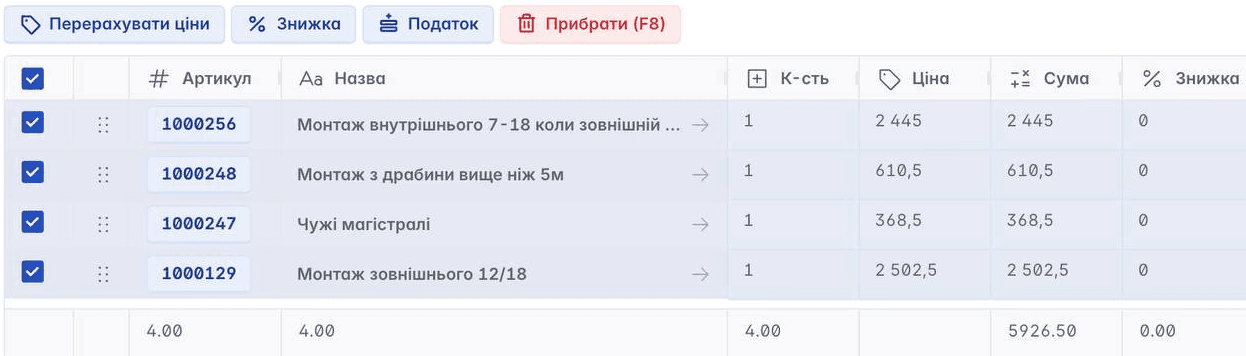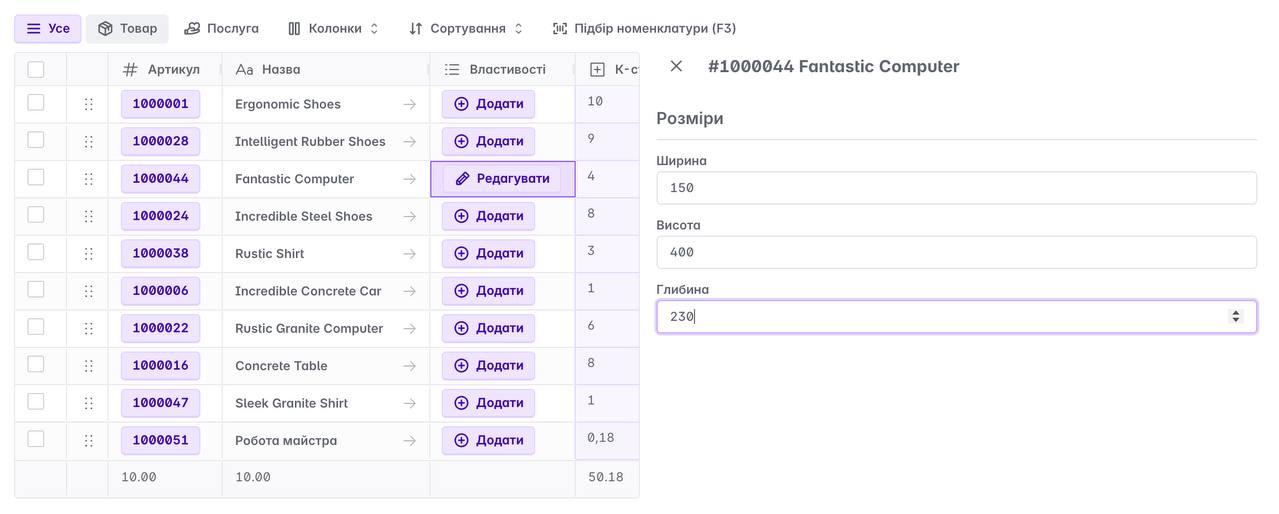 Ми додали автоматичний перерахунок ціни для вибраної номенклатури прямо в документі.