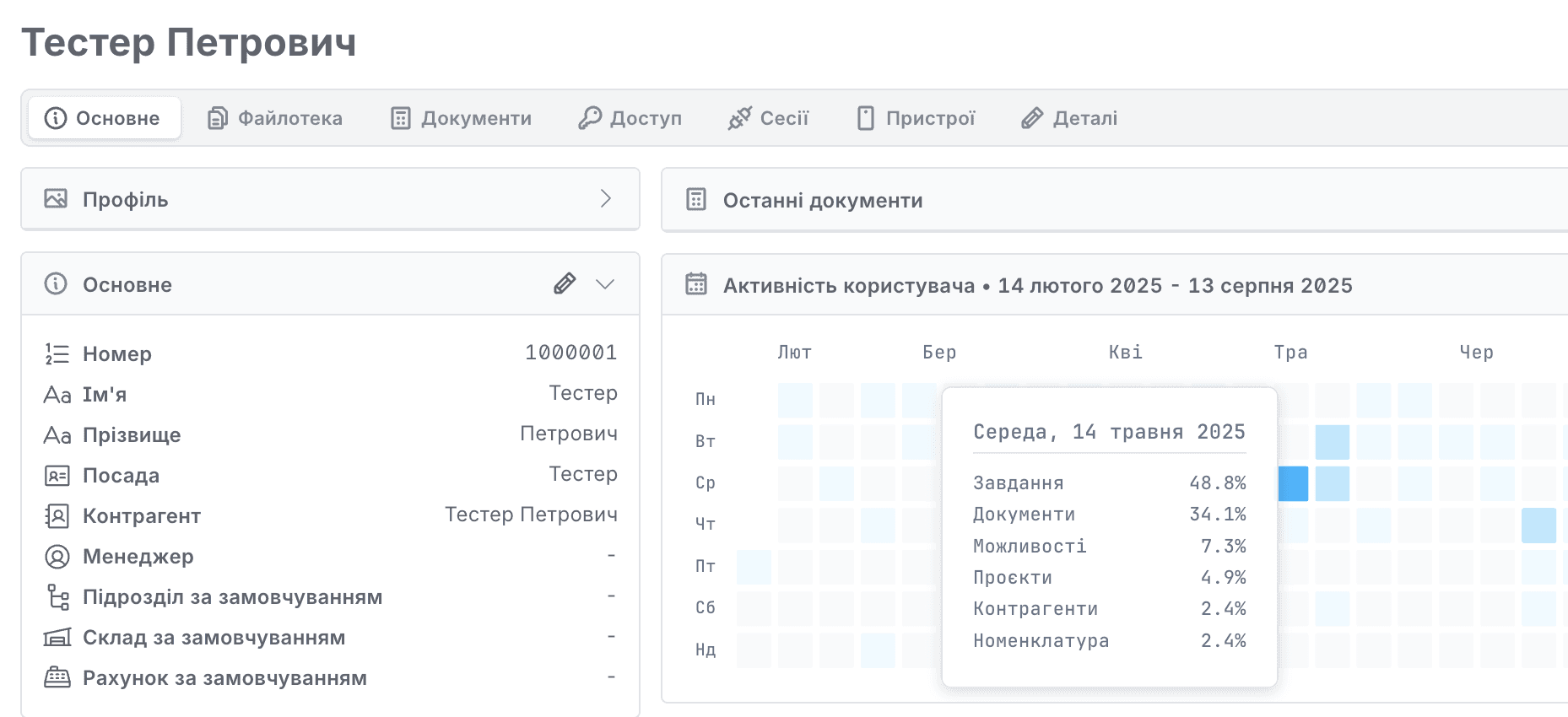 Суттєвих змін зазнала сторінку учасника. Стисла анкетна інформація доповнена графіком активності з розподілом за типом даних