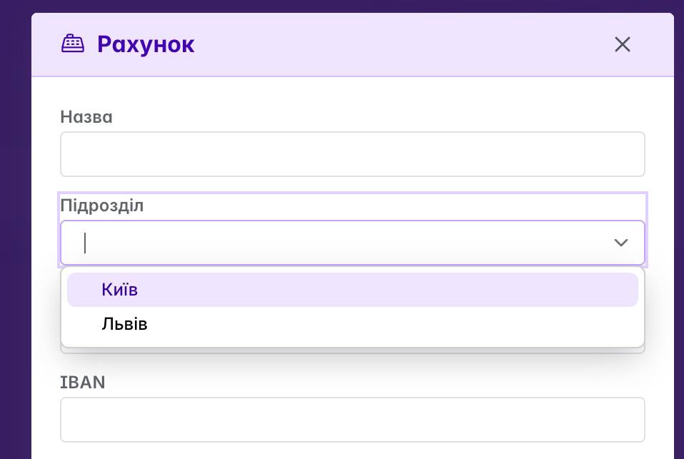Ми додали поле "Підрозділ" до Рахунків, Складів та Локацій