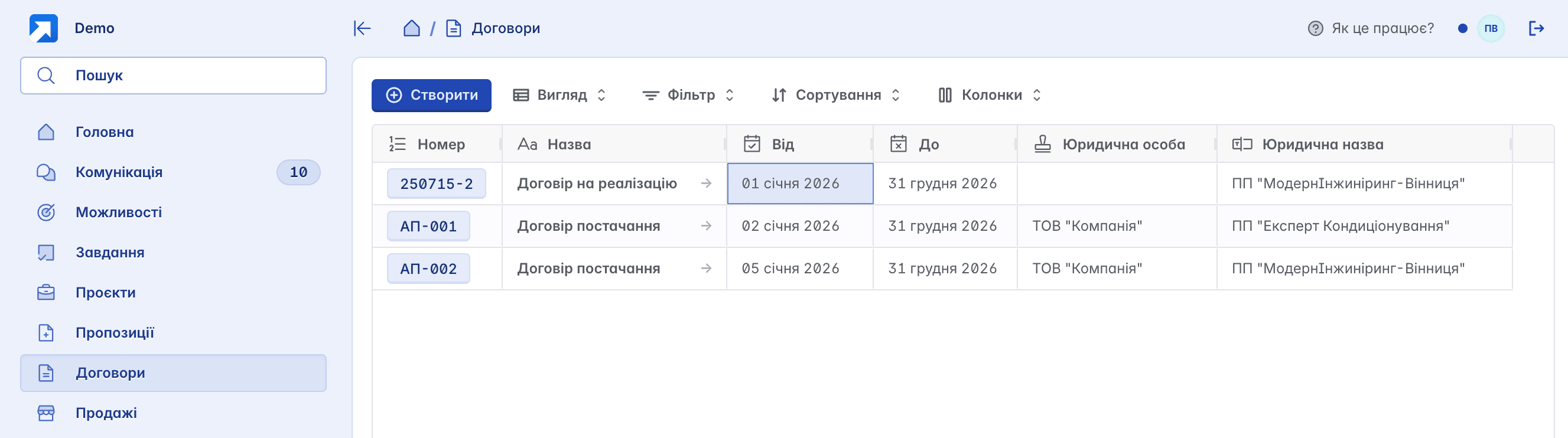 Ми створили окрему сторінку "Договори" - зручний реєстр усіх договорів компанії в одному місці