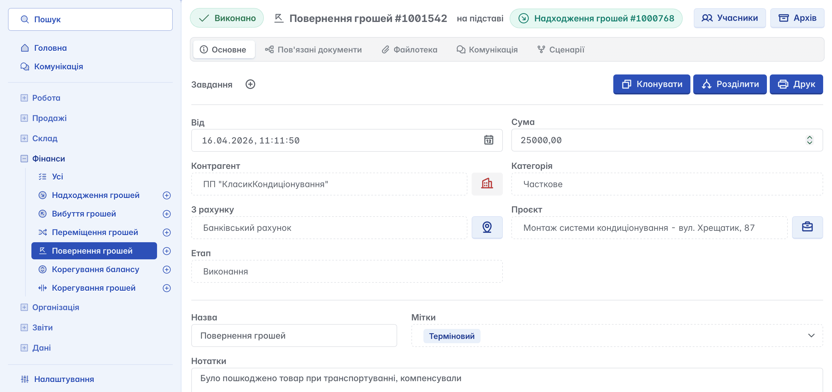 Фінанси - це модуль Керуй™, що забезпечує документування руху фінансових засобів між вами та вашими контрагентами по рахунках/касах