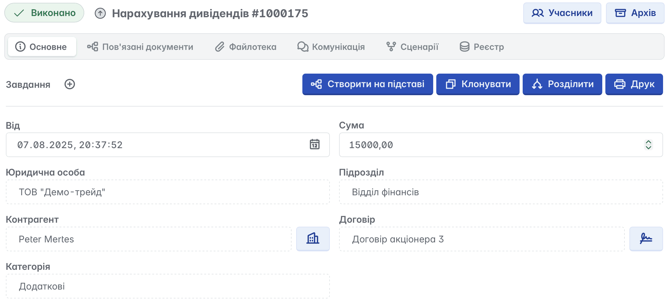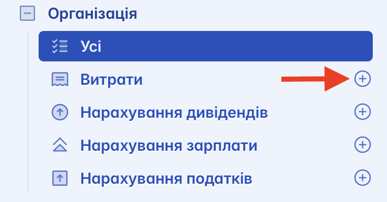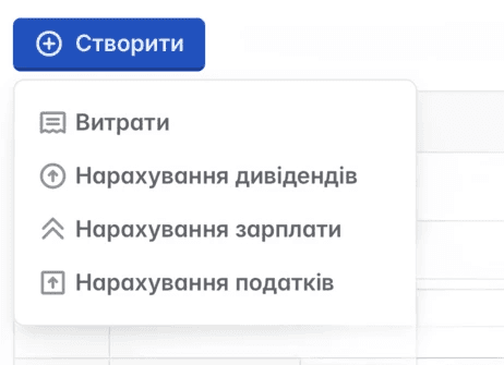 Для обліку організаційних витрат у Керуй™ застосовуються чотири типи фінансових документів: "Витрати", "Нарахування дивідендів", "Нарахування зарплати", "Нарахування податків"