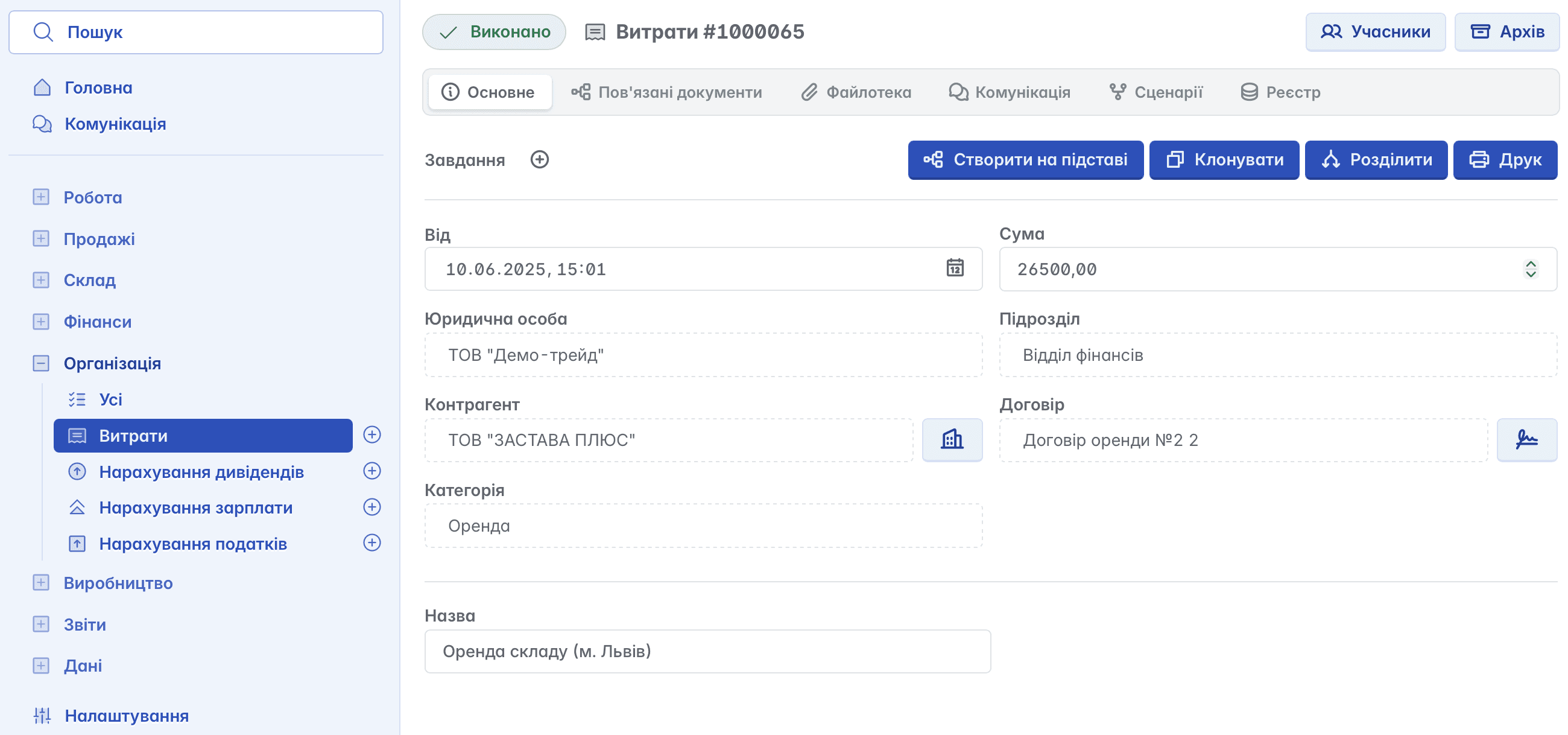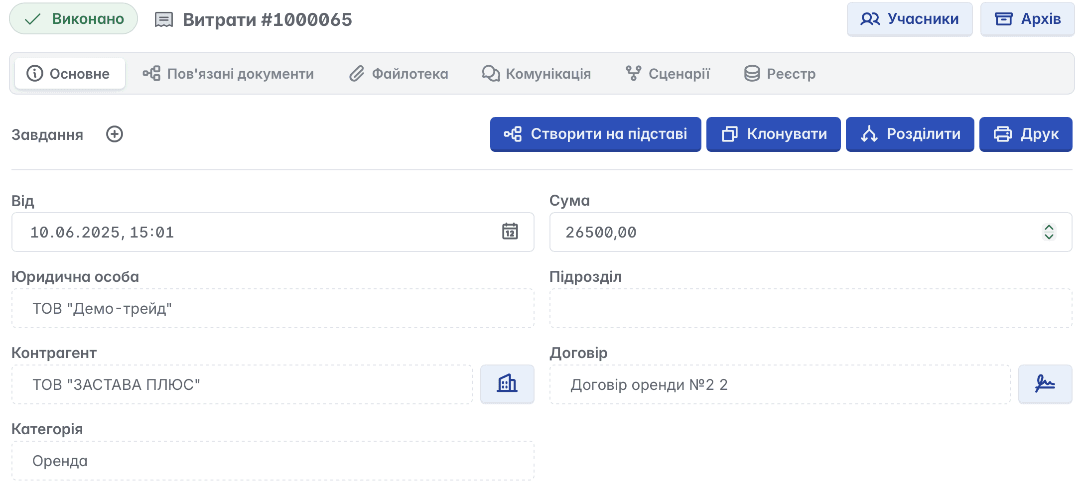 фіксація внутрішніх витрат компанії (оренда, реклама, комунальні послуги тощо)