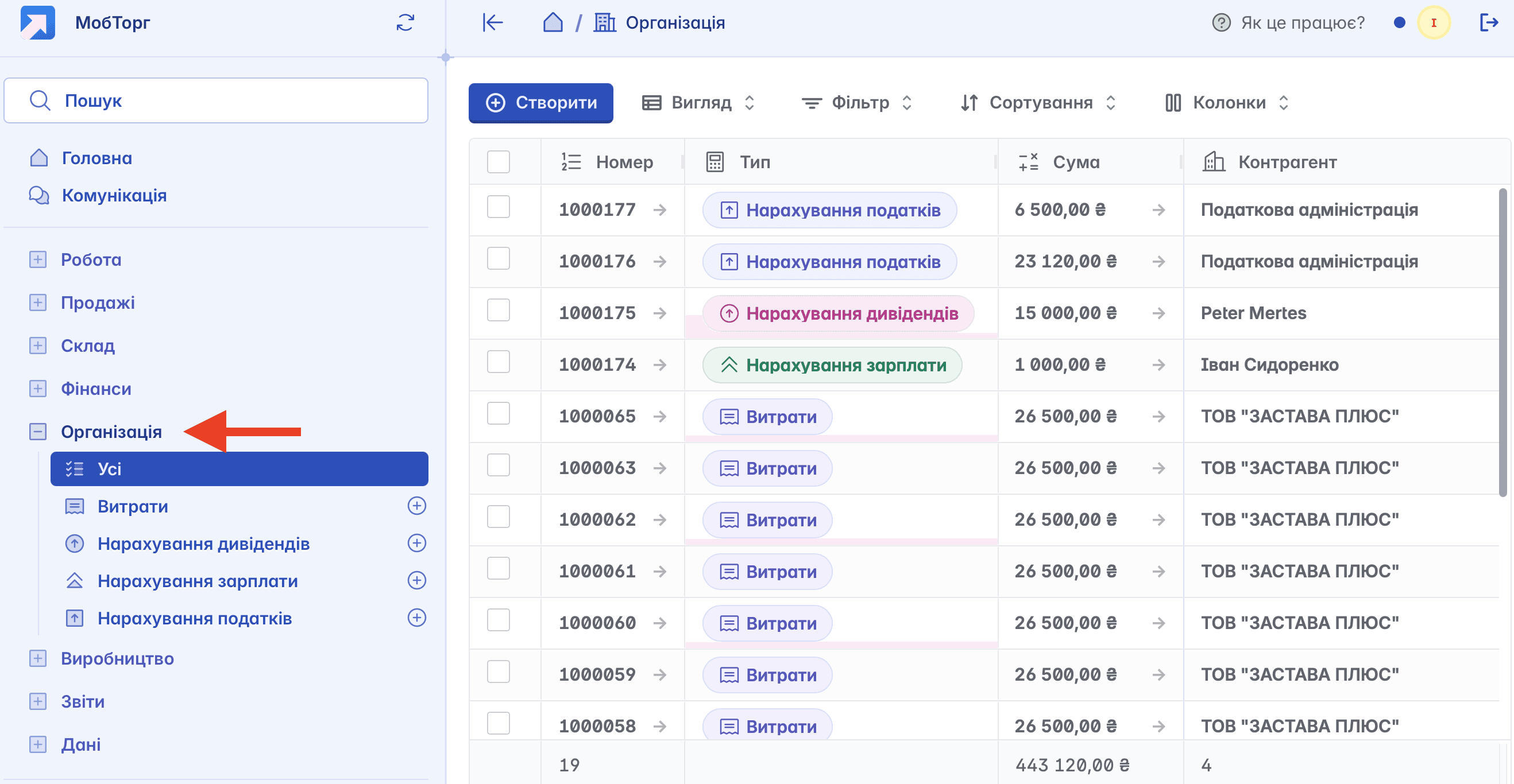 Організація - це модуль Керуй™, що використовується для обліку внутрішніх фінансових операцій компанії