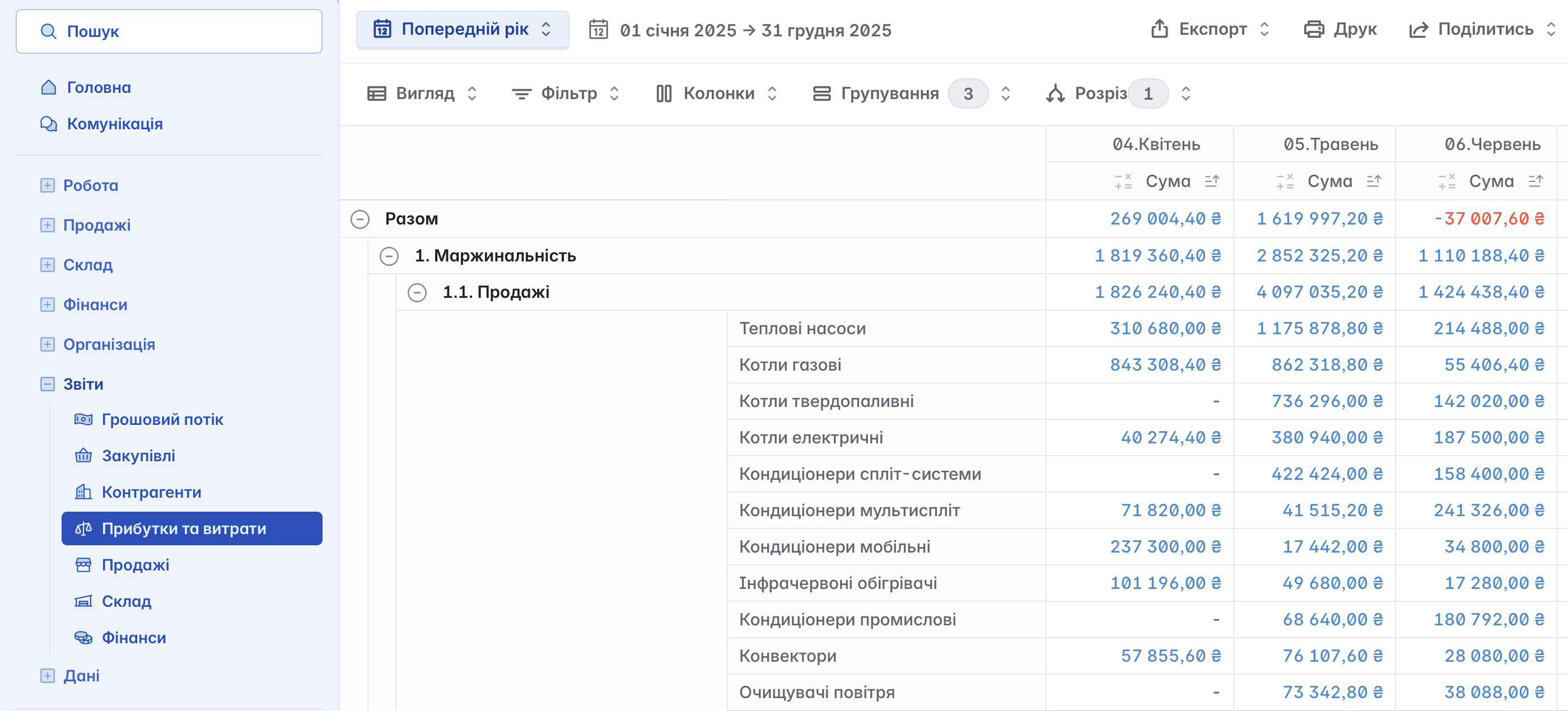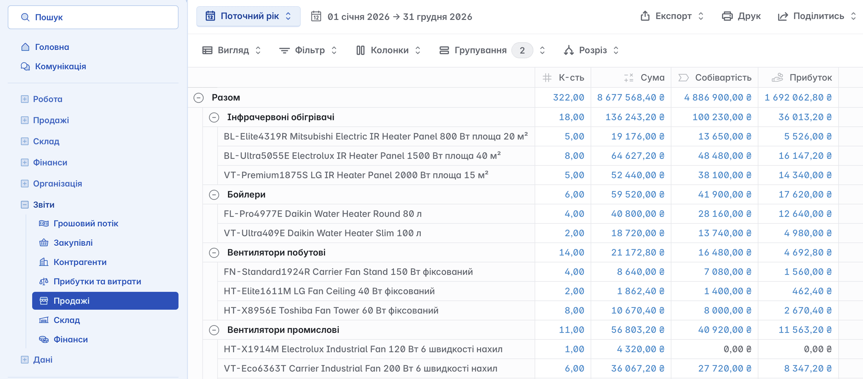 Звіт використовується для аналізу реалізації товарів і послуг за визначений період. Містить інформацію про обсяги продажів та прибуток з кожної операції, що дає змогу оцінити ефективність продажів і прибутковість товарів або послуг