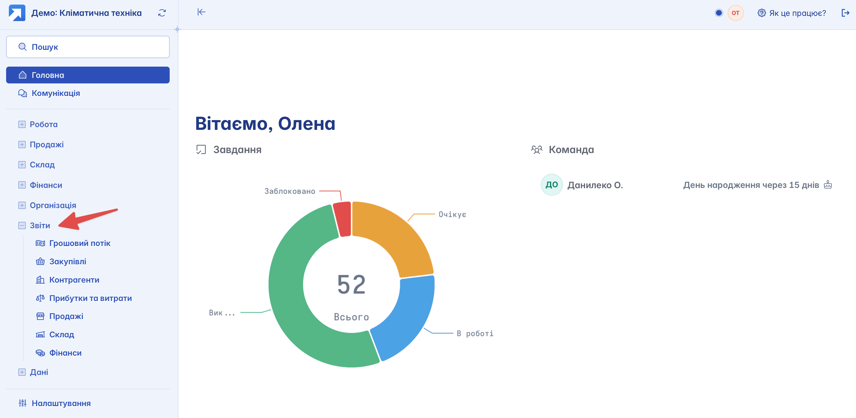 Модуль "Звіти" розташований на панелі навігації ліворуч