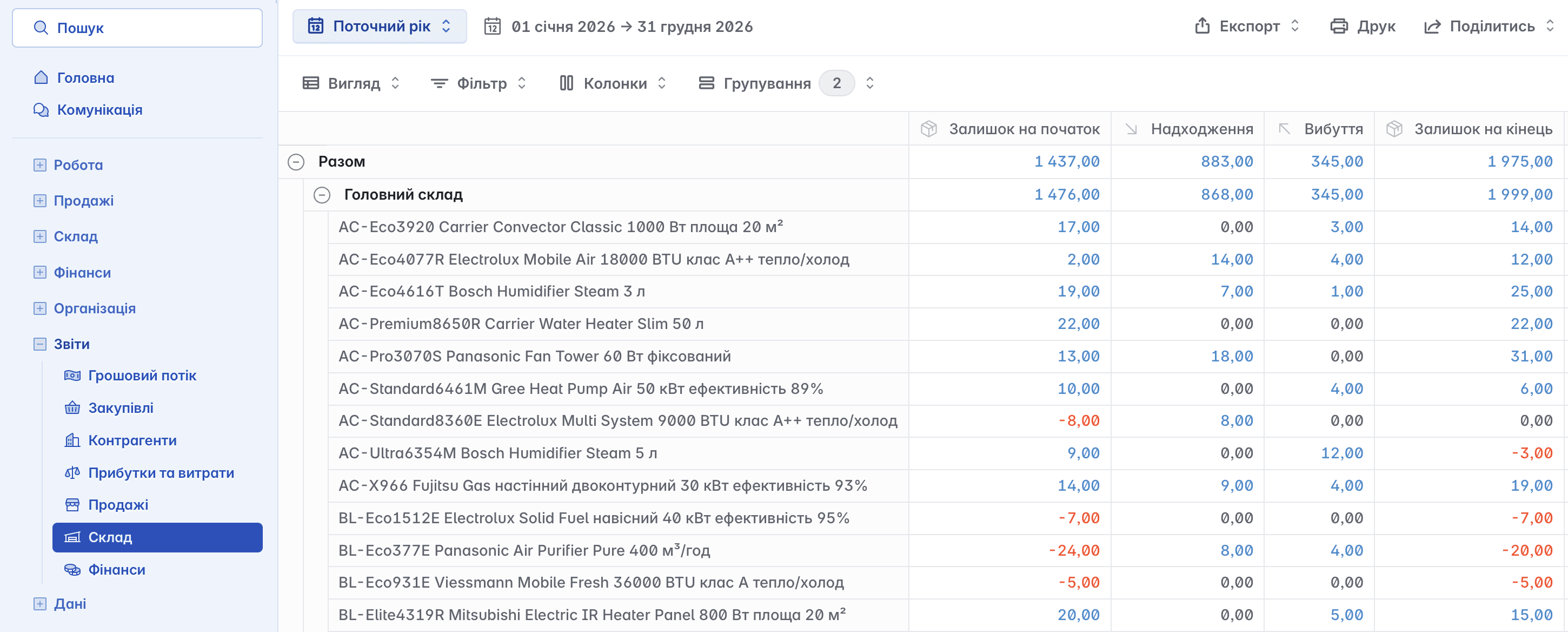 відстежувати залишки на складі та стан взаєморозрахунків із контрагентами