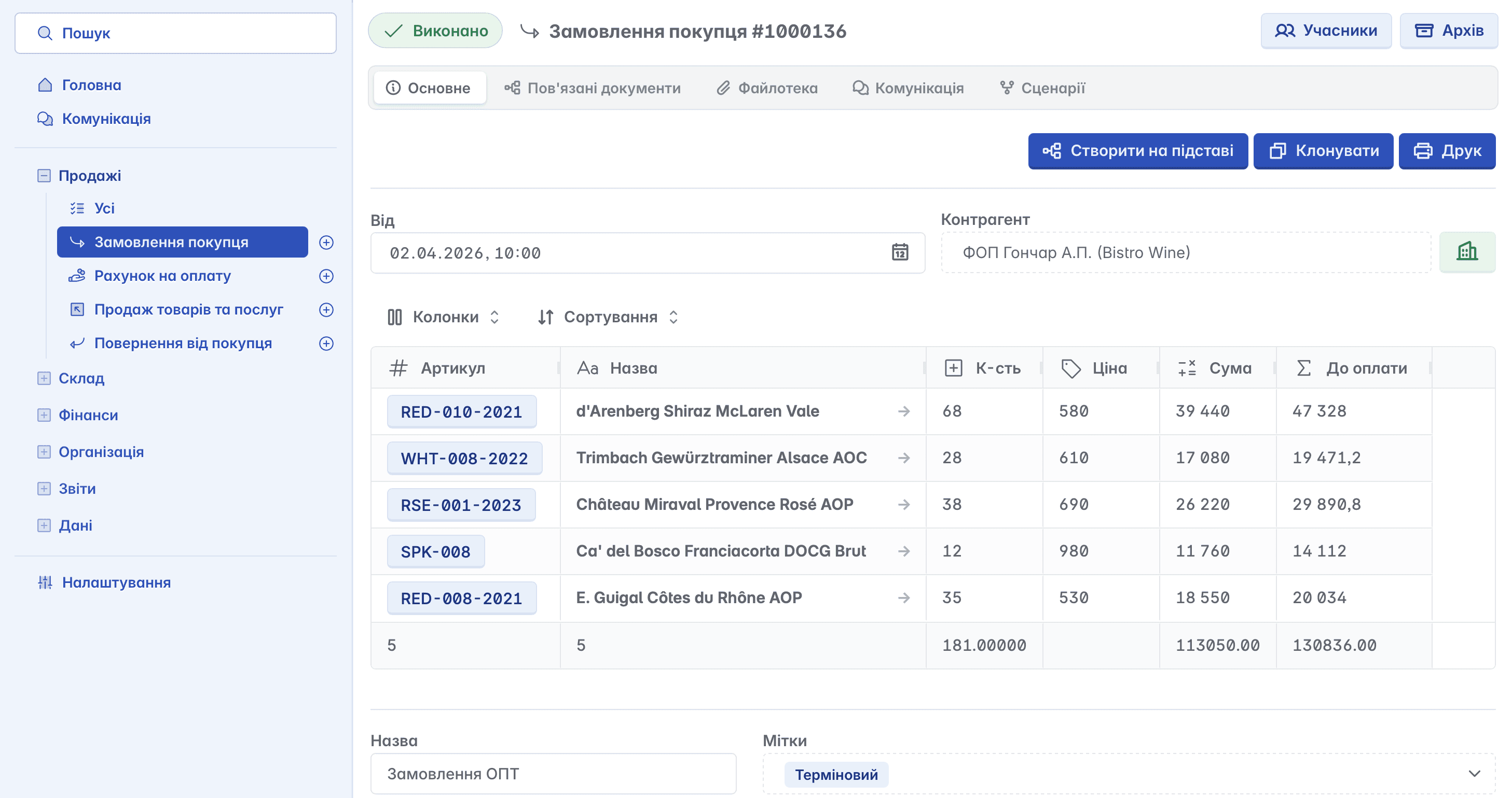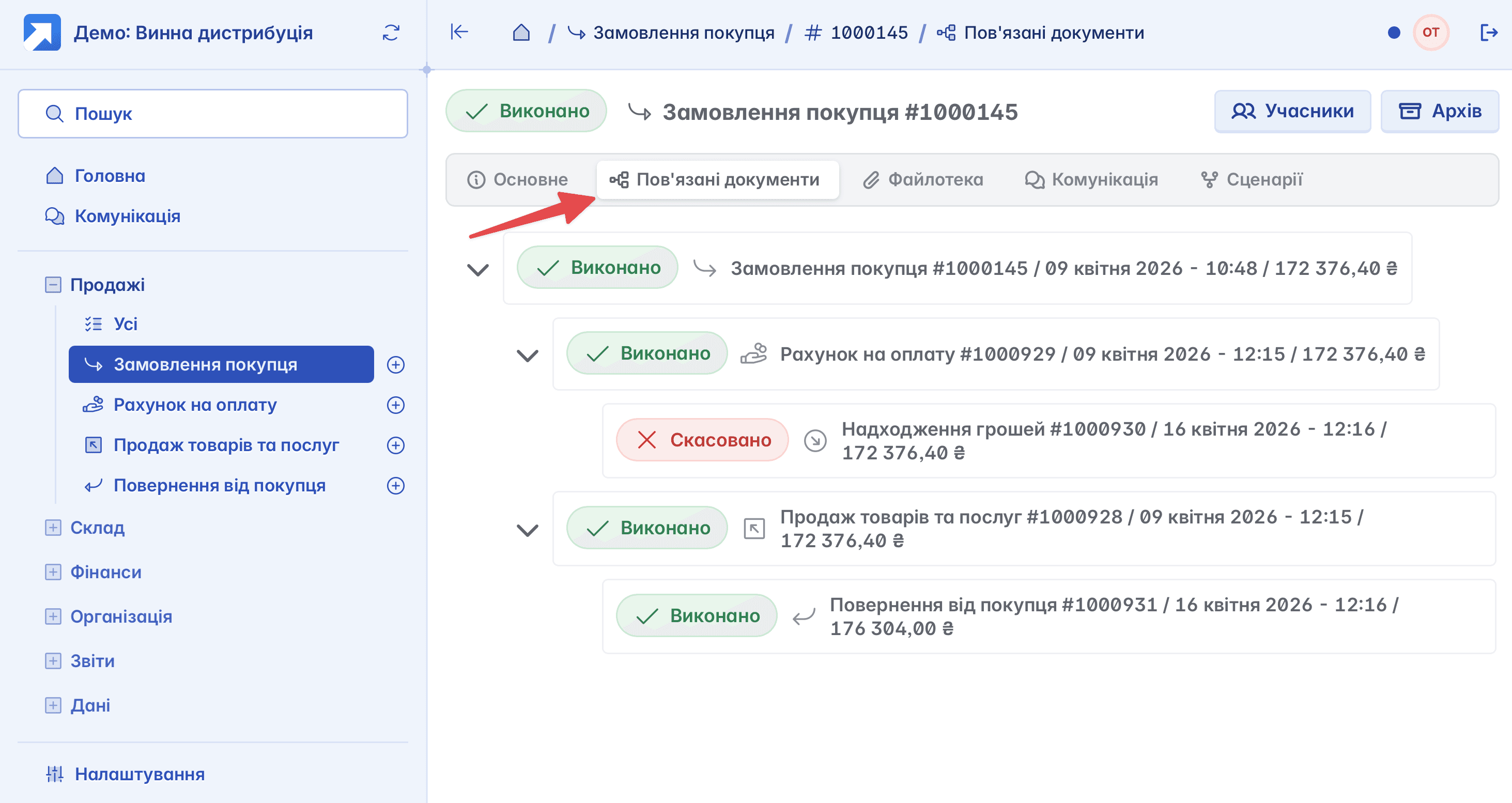 Всі ці документи взаємодіють між собою, ви можете створити ланцюжок дій, щоб відстежити весь процес продажу