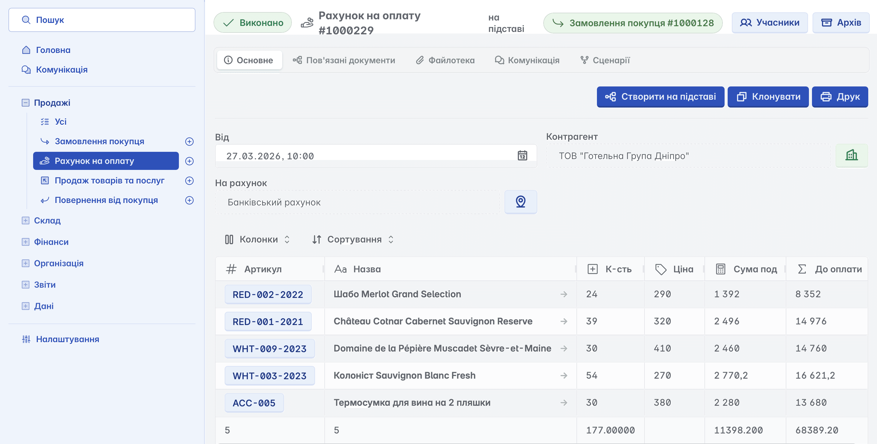 формування рахунків на оплату