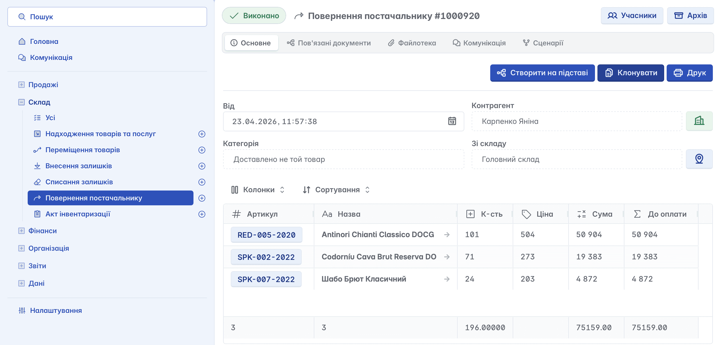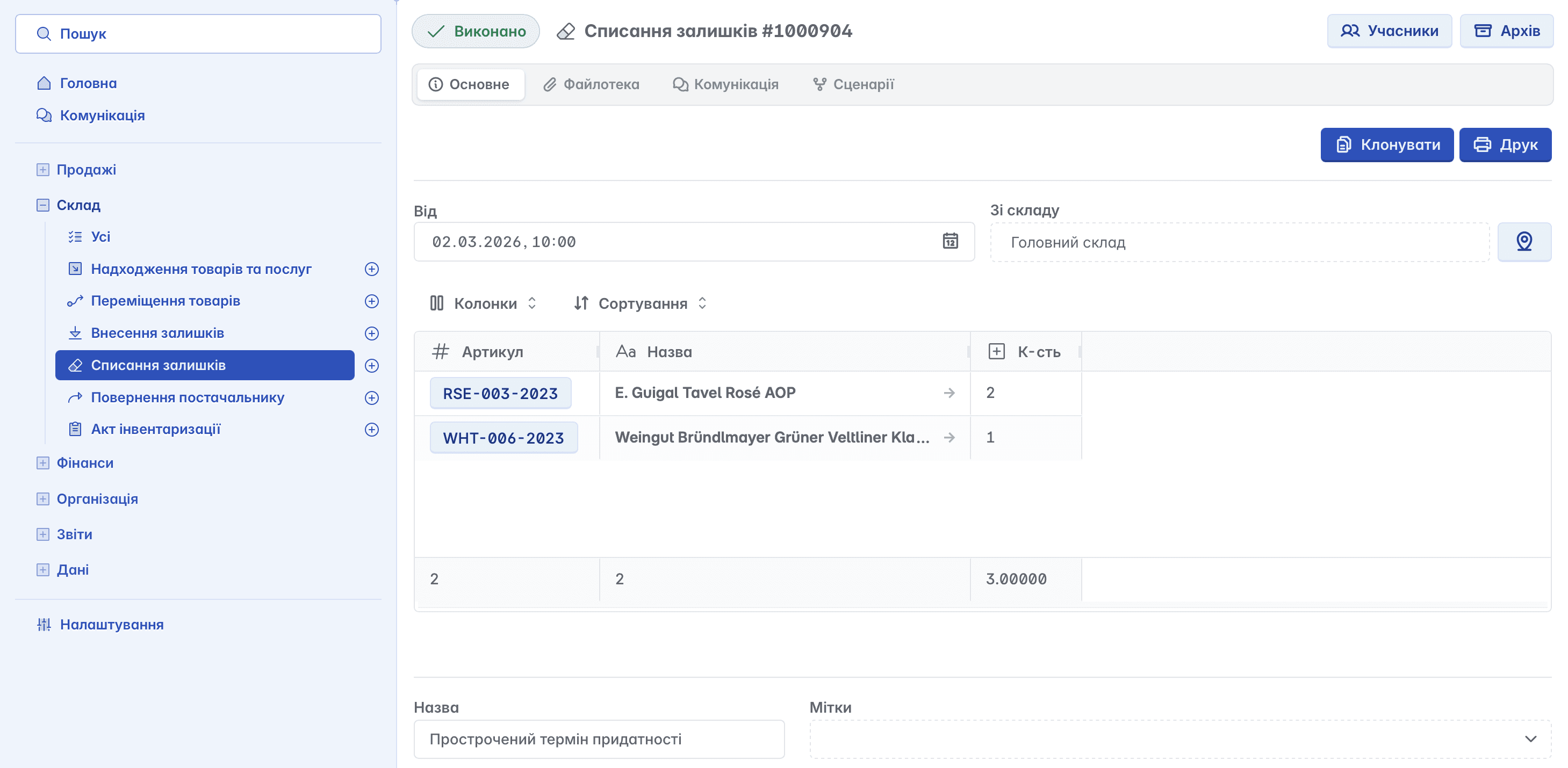 забезпечення актуальності складського обліку та звітності